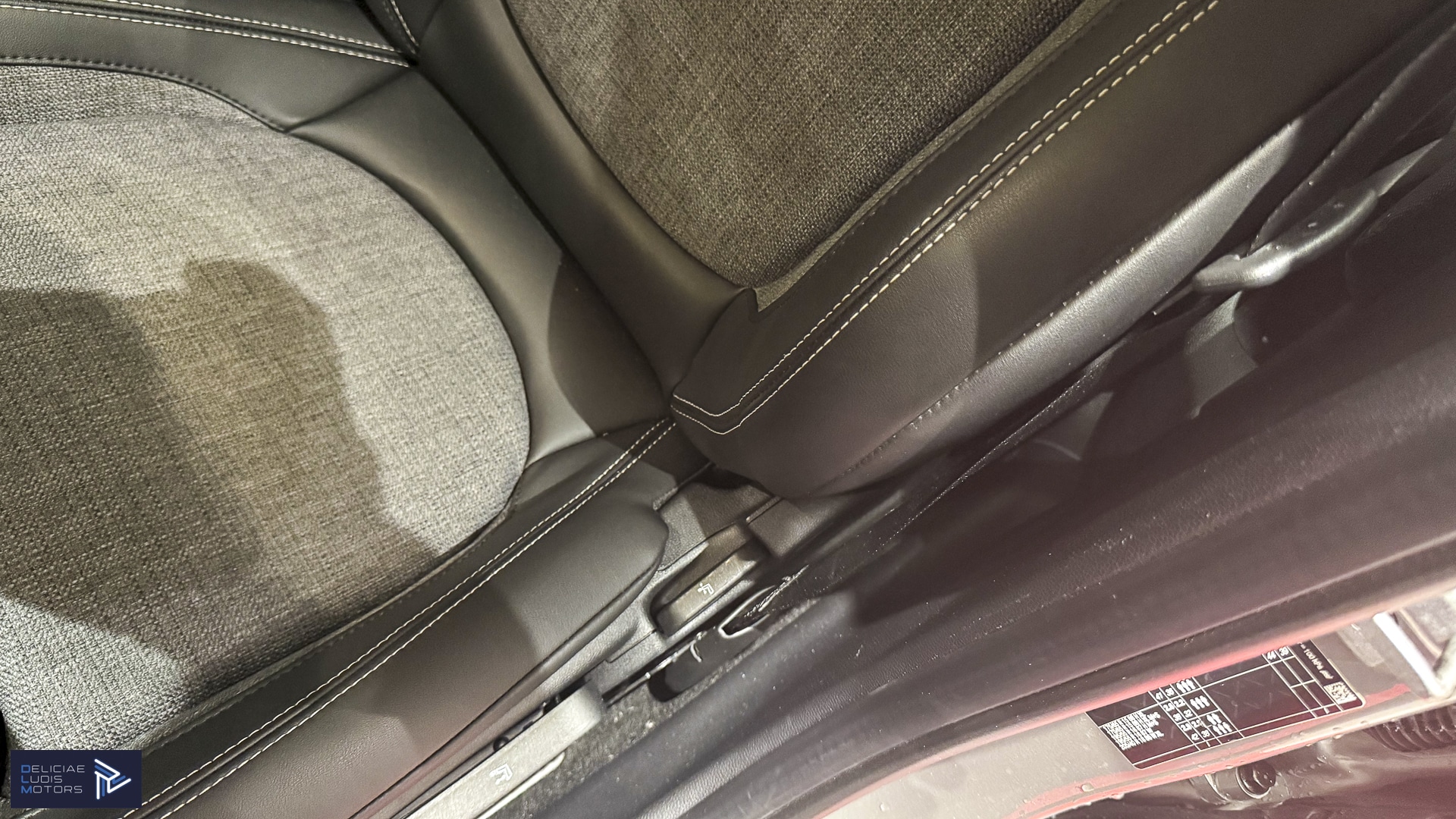 L’intérieur offre une sellerie cuir tissus noiret gris avec des sièges enveloppants, chauffants mais aussi une belle luminosité avec son grand toit ouvrant.